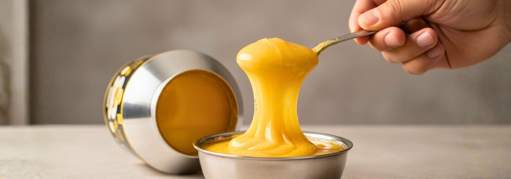 🟡 مزيج أصيل يجمع حلاوة التمر ومذاق السمن البلدي الأصيل، يجتمع رب التمر الفاخر المستخلص على البارد مع سمن بقر بلدي محنوذ بحجر المرو، ليقدما لك منتجًا يجسّد الطابع الجنوبي الأصيل في المذاق والفائدة.