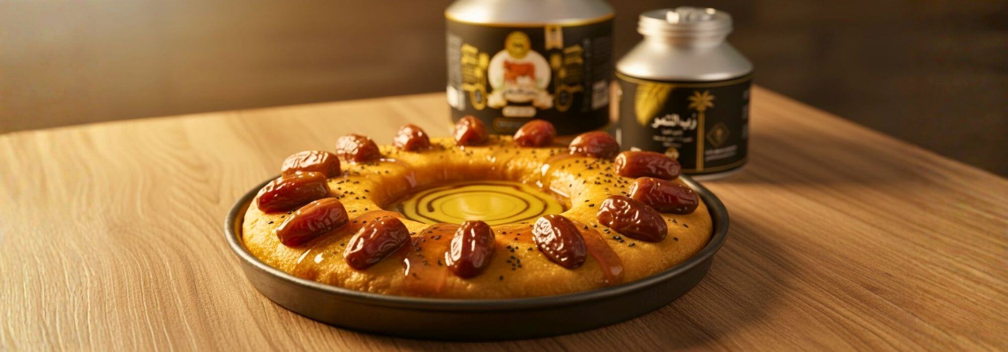 يمتزج السمن الذائب بلونه الذهبي الزيتي مع رب التمر الغني الداكن، لتتكوّن وجبة أصيلة غنية بالعناصر الغذائية.